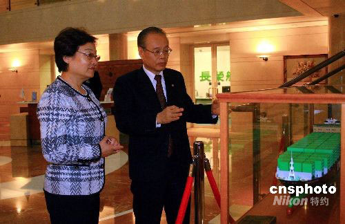 當地時間9月12日下午,正在倫敦訪問的中國國務院僑辦主任李海峰下午來到臺資長榮集團英國總部參觀訪問,與長榮集團高層會晤。圖為長榮集團副總裁葉順利(右)向李海峰介紹長榮公司情況。中新社發 李鵬 攝