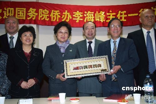 九月十七日,正在法國訪問的中國國務院僑辦主任李海峰來到由旅法臺胞開辦的中文學校——法國中華學校,看望旅居在巴黎的臺胞,考察海外中文學校,了解臺胞所需。李海峰勉勵旅法臺胞繼續為弘揚中華文化、促進兩岸交流及祖國和平統一作出新的貢獻。圖為李海峰(左三)向法國中華會館和法國中華學校贈送禮品。中新社發 吳衛中 攝