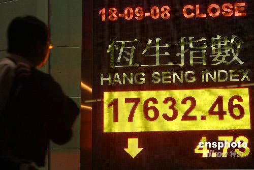 九月十八日,香港恒生指數(shù)收市報一萬七千六百三十二點(diǎn)四六點(diǎn),跌四點(diǎn)七三點(diǎn),全日波幅高達(dá)一千五百點(diǎn)。中新社發(fā) 武仲林 攝
