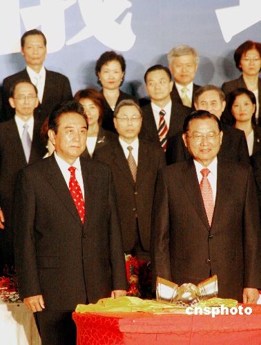 11月4日下午,海協會會長陳云林和海基會董事長江丙坤簽署有關兩岸空運直航、海運直航、郵政、食品安全的4項協議。圖為協議文本簽署后,陳云林向江丙坤致贈水晶作品《握手》。中新社發 黃少華 攝