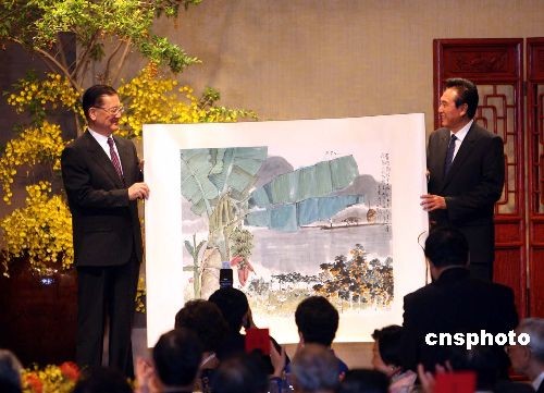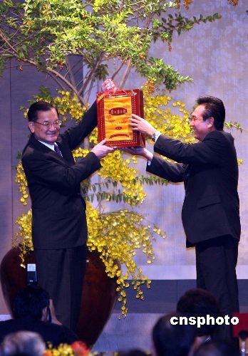 十一月四日晚,國民黨榮譽主席連戰(zhàn)、連方瑀伉儷在臺北國賓飯店設(shè)宴款待陳云林訪問團一行。中新社發(fā) 洪少葵 攝