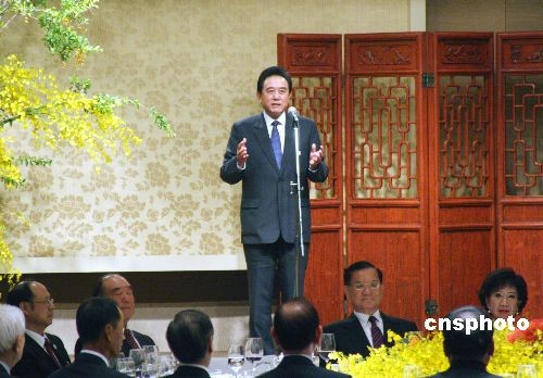 11月4日晚間,中國國民黨榮譽主席連戰與夫人連方瑀在臺北國賓飯店設宴歡迎海協會會長陳云林夫婦及海協會協商代表團一行。陳云林致詞表示,人生可能有千百萬個夢,到臺灣這塊可愛的土地上,和江丙坤董事長共同簽屬四項協議,是他人生最好的夢。今后,兩會還將勇敢地走去,創造兩岸未來和平新局面。中新社發 黃少華 攝