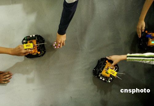十一月九日,由香港創(chuàng)意科技教育協(xié)會主辦的第三屆創(chuàng)協(xié)杯——創(chuàng)意科技機械人大賽在香港舉行,一百隊來自中國內(nèi)地、香港各中小學(xué)學(xué)生及社區(qū)組織組成的隊伍參賽,分享創(chuàng)意科技帶來的激情與樂趣。中新社發(fā) 武仲林 攝