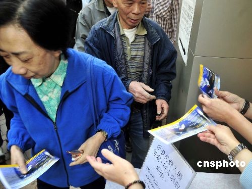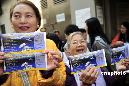 十二月二日早上九時,神舟七號航天代表團的大匯演門票在香港二十一個地點免費派發,每人限取兩張。中新社發 譚達明 攝
