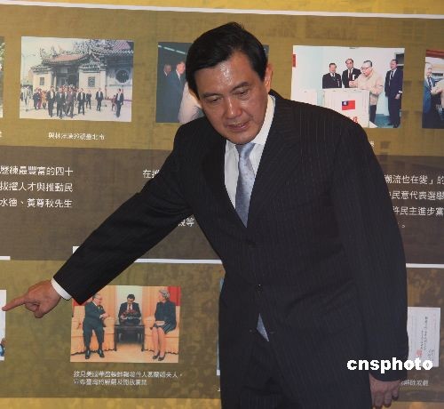 4月13日是蔣經(jīng)國(guó)先生百年誕辰,臺(tái)灣近日舉辦系列紀(jì)念活動(dòng)。“永續(xù)經(jīng)國(guó)”蔣經(jīng)國(guó)先生百年誕辰紀(jì)念特展4月11日在臺(tái)北市“國(guó)父紀(jì)念館”開幕。臺(tái)灣領(lǐng)導(dǎo)人馬英九出席開幕式,并親自給前來觀展的市民介紹1986年馬英九擔(dān)任翻譯時(shí)和蔣經(jīng)國(guó)先生的合照。中新社發(fā) 耿軍 攝