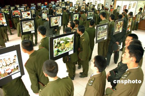 圖:濟南軍區(qū)某部舉辦慶祝“十七大”攝影書畫展