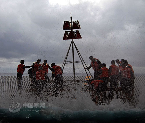 近日,南海艦隊某登陸艦支隊把艦艇拉到陌生海域,并在惡劣氣象條件下開展實彈射擊、航行補給等科目訓練,著力提升部隊核心軍事能力。圖為實彈射擊前官兵頂風破浪投放靶標的情景。 中國軍網發(fā) 李彥林攝