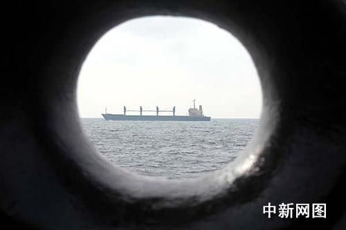 牛年正月初一,“海口”號導彈驅逐艦護航“豐盛海”號商船破浪前行。中新社記者 孫自法 攝