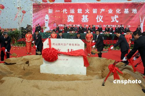 十月三十日,中國國防科學(xué)技術(shù)工業(yè)委員會、天津市政府官員同中國航天科技集團公司及該公司所屬中國運載火箭技術(shù)研究院負責人等,在天津濱海新區(qū)為中國新一代運載火箭產(chǎn)業(yè)化基地揮鍬奠基。中國新一代運載火箭產(chǎn)業(yè)化基地項目,是新一代運載火箭研制工程的基礎(chǔ)保證,也是后續(xù)批量生產(chǎn)和產(chǎn)業(yè)化、軍民結(jié)合的航天高科技重要基地。該項目總投資約數(shù)十億元人民幣,總占地面積約三千畝,分為一期工程和二期工程。建成后將滿足中國未來三十至五十年發(fā)展空間技術(shù)及和平利用空間的需要,實現(xiàn)運載技術(shù)跨越式發(fā)展和航天可持續(xù)發(fā)展,對引領(lǐng)中國高科技產(chǎn)業(yè)發(fā)展有著重大的輻射和推動作用。中新社發(fā) 孫自法 攝