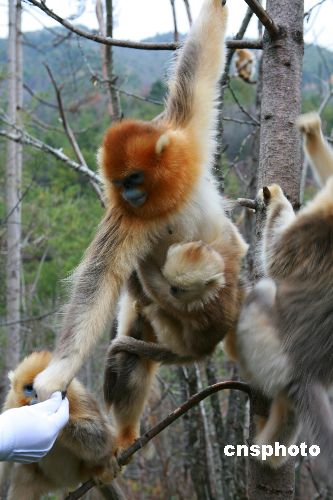 神農架川金絲猴人工補食實驗獲成功(圖)