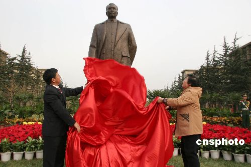 十一月十三日,中國運載火箭技術(shù)研究院為新中國十大元帥之一的聶榮臻塑像揭幕,以紀(jì)念聶榮臻為中國航天事業(yè)和國防科技事業(yè)所做出的卓越貢獻,迎接該院建院五十周年。聶榮臻之女聶力將軍(右)、中國航天科技集團公司總會計師吳艷華為聶榮臻銅像揭幕。中新社發(fā) 孫自法 攝