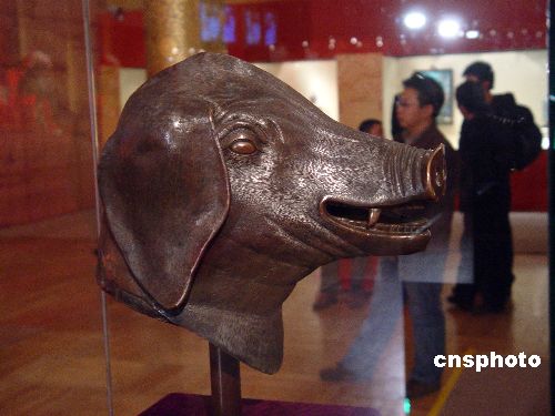 圖為圓明園豬首銅像。