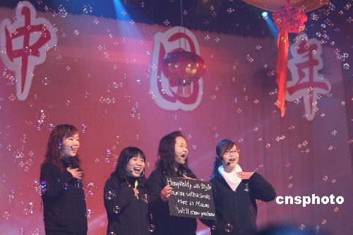 12月26日晚,由澳門大學等8所高校30名學生組成的訪問團來到江蘇淮陰師范學院,與該校師生舉行一場“好運中國年”交流演出。中新社發 蘇杭 攝