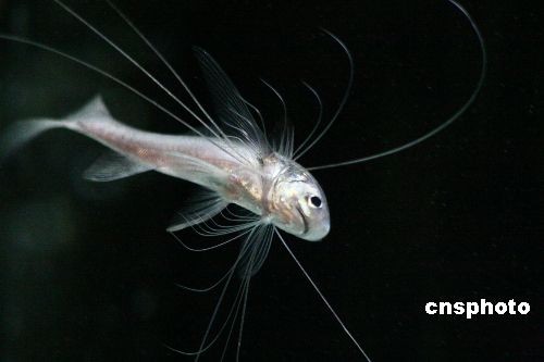 3月16日,“千手觀音”魚在上海海洋水族館展出。這種珍稀魚類名叫長指馬鲅,是該館最近引進的。長指馬鲅主要分布在南亞地區的海域中,腹部長著很多細線狀的鰭條,俗稱“千手觀音”。中新社發 穎慧 攝
