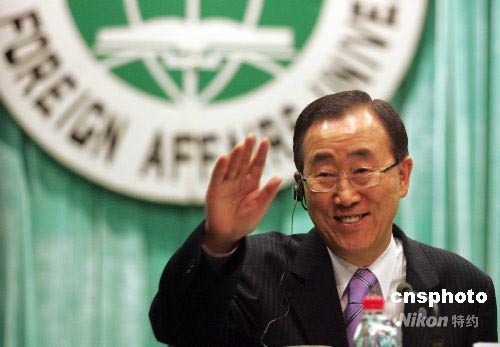 7月1日下午,聯合國秘書長潘基文抵達北京,開始對中國進行為期3天的正式訪問。圖為潘基文在外交學院發表演講。中新社發 張宇 攝