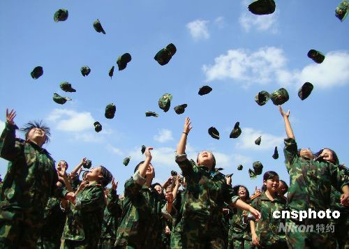 全國(guó)各高校新生一開學(xué)便開始大學(xué)“第一堂課”——軍訓(xùn)。揚(yáng)州大學(xué)文學(xué)院針對(duì)194名“90后”大一新生,提出了“快樂軍訓(xùn)”的口號(hào),除了為期10多天的正常軍事訓(xùn)練外,學(xué)院還開展了趣味游戲、“軍花”評(píng)比、內(nèi)務(wù)競(jìng)賽等活動(dòng),為新生的軍訓(xùn)生活增添了一份樂趣,同時(shí)促進(jìn)彼此間的認(rèn)識(shí)和了解。中新社發(fā) 陳中秋 攝