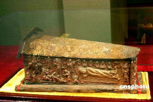 圖為從興隆塔地宮出土被專家鑒定為國家一級文物的鎏金銀棺。