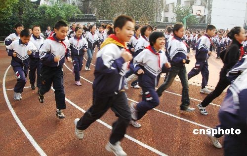 2008年10月27日,蘇州市東中市實驗小學的1400的多名學生舉行了陽光體育冬季長跑活動。通過開展冬季長跑活動,可以磨練青少年學生的意志品質,培養良好的鍛煉習慣,有效提高學生體質特別是耐力素質水平,進一步掀起陽光體育運動的新高潮,這也是根據國家有關部門的要求而進行的。中新社發 朱子寒 攝