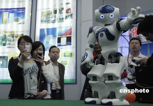 10月28日,中國首個“自主創(chuàng)新要素對接會”在安徽合肥國際會展中心開幕。世界科技城市聯(lián)盟的會員城市、各國駐華科技參贊以及金融機(jī)構(gòu)、各類風(fēng)險投資機(jī)構(gòu)等紛紛參加本屆對接會。圖為中國科技大學(xué)制造的會跳舞唱歌的藍(lán)鷹機(jī)器人吸引了眾多參展人員駐足拍照。中新社發(fā) 張婭子 攝