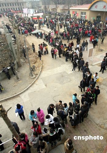 2月4日,成千上萬(wàn)的考生從山東各地趕赴濟(jì)南報(bào)名參加省外院校藝術(shù)類專業(yè)考試。當(dāng)日,濟(jì)南鐵道職業(yè)技術(shù)學(xué)院內(nèi)的藝考報(bào)名現(xiàn)場(chǎng),迎來(lái)首個(gè)藝考高峰日,天津體育學(xué)院、西南大學(xué)等8個(gè)院校的報(bào)名點(diǎn)前人頭攢動(dòng),等待報(bào)名的考生排起了百米長(zhǎng)的隊(duì)伍。不少考生和家長(zhǎng)清晨6點(diǎn)就趕來(lái)排隊(duì)。中新社發(fā) 王鋒鋒 攝