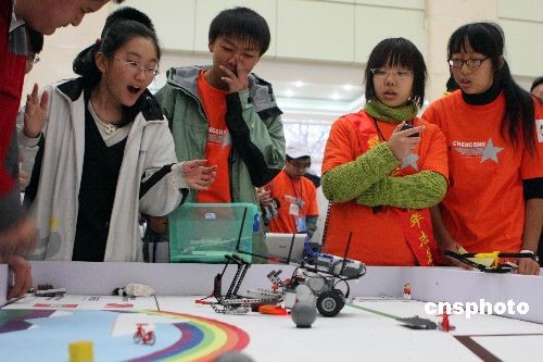 3月6日,第24屆云南省青少年科技創(chuàng)新大賽機(jī)器人競(jìng)賽在云南省科學(xué)技術(shù)館舉辦。來(lái)自云南省內(nèi)的102支隊(duì)伍參加了“機(jī)器人足球比賽”、“FLL機(jī)器人工程挑戰(zhàn)賽”等多個(gè)項(xiàng)目的比賽。圖為參賽隊(duì)員進(jìn)行“FLL機(jī)器人工程挑戰(zhàn)賽”的比賽。中新社發(fā) 劉冉陽(yáng) 攝