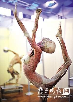 現(xiàn)場的講解員告訴記者,現(xiàn)在的標本都是塑化技術(shù),這是上世紀70年代由德國人哈根思發(fā)明的,中國于2000年引進。過去用福爾馬林浸泡的標本易變色、易變形,保存時間也不長。而塑化保存的標本都是經(jīng)過了脫水、脫脂,所有現(xiàn)在我們所看到的都是肌肉組織,看起來也就更勻稱和美觀,而經(jīng)過這樣一項技術(shù),標本可以保存500年之久,“可以稱得上現(xiàn)代木乃伊了。”