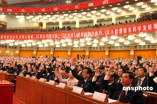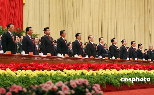 十月二十一日,中國共產黨第十七次全國代表大會在北京人民大會堂閉幕,胡錦濤、江澤民、吳邦國、溫家寶等代表出席會議。中新社發 毛建軍 攝
