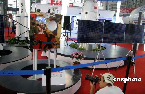 10月11日,“嫦娥一號”衛(wèi)星模型在深圳高交會上亮相,因其是中國第一顆人造月球衛(wèi)星并即將發(fā)射而備受關(guān)注。第九屆深圳高交會將于當(dāng)晚開幕。中新社發(fā) 孫自法 攝