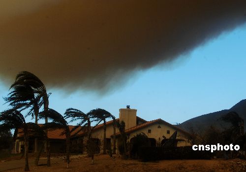 十月二十五日,美國南加州肆虐五天的山火集中在五個地區,當地居民和許多豪宅依然受到煙火威脅,目前已有一百萬災民流離失所。中新社發 賈國榮 攝