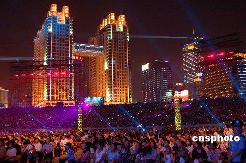 十月二十八日,第四屆中國—東盟博覽會開幕,當晚博覽會開幕式晚會暨南寧國際民歌藝術節在民歌廣場開幕,民歌廣場和周圍高樓燈光璀璨,夜景十分迷人。中新社發 劉萬強 攝