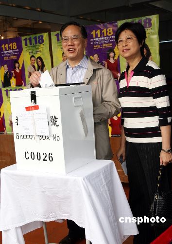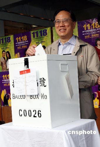 ·香港區議會選舉舉行 曾蔭權吁市民踴躍投票(圖)