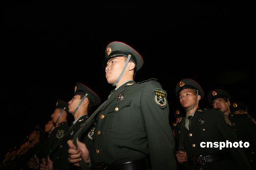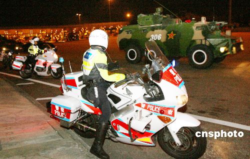 圖為二十五日零時,輪換進港的陸軍分隊和空軍地勤部隊通過香港落馬洲口岸。