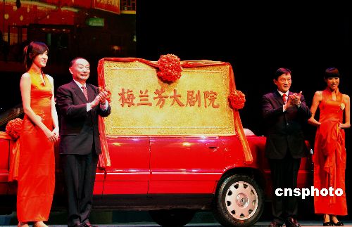 梅蘭芳之子梅葆玖和國家京劇院院長吳江共同為梅蘭芳大劇院揭牌。