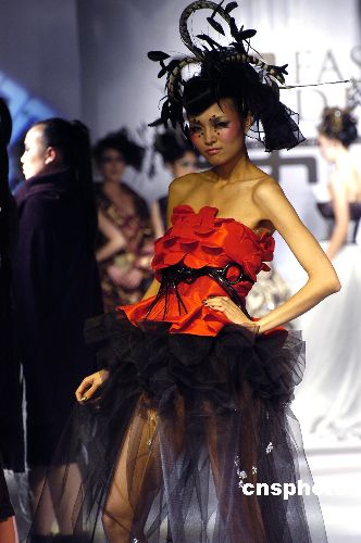 12月22日晚,上海時裝周推薦知名設計師Keeven/翟晏辛在“尚街LOFT”舉辦一場名為“胭—顏—演—晏”之暗夜“晶”靈的主題時裝秀。發布會服裝以黑色為主,凸顯了暗夜主基調。中新社發 董鴻景 攝
