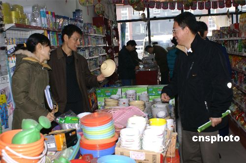 十二月二十六日,全國產(chǎn)品質量和食品安全專項整治行動檢查驗收小組在超市檢查。全國產(chǎn)品質量和食品安全專項整治行動檢查驗收小組于本月二十四來到河南對河南省產(chǎn)品質量和食品安全專項整治行動進行檢查驗收。中新社發(fā) 史寶銀 攝