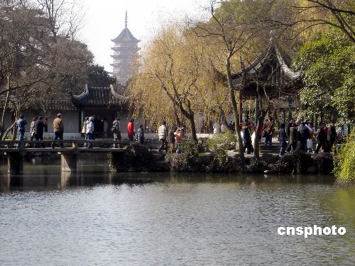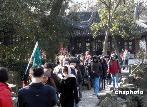 12月30日,游客在蘇州古典園林拙政園游覽。當日是2008年元旦“小長假”第一天,盡管蘇州天氣寒冷,但姑蘇園林內人氣依然火爆。中新社發 王建康 攝