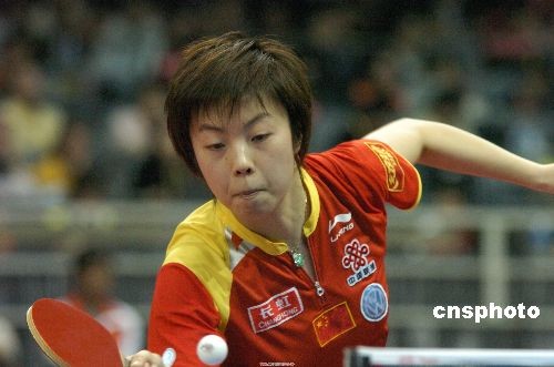 3月1日晚,第四十九屆世乒賽舉行女子團體賽的決賽,中國選手張怡寧在比賽中獨得兩分,幫助中國隊3比1擊敗新加坡隊,并當選本次大賽最佳女運動員。 中新社發(fā) 柯小軍 攝