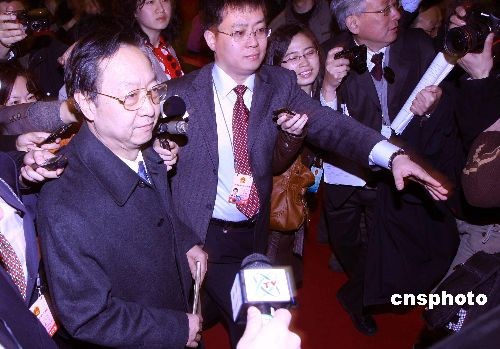 3月5日,十一屆全國人大一次會議在北京開幕,國家安全生產監督管理總局局長李毅中一露面即被記者“關照”合圍,追訪安全生產老大難問題。中新社發 張宇 攝