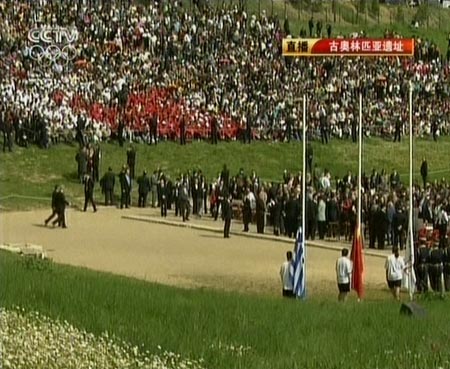 當地時間3月24日,北京奧運會圣火采火儀式即將拉開帷幕,中新社前方記者在希臘采火儀式前方發來報道。今天的奧林匹亞遺址天氣晴好,非常適合進行圣火采集。圖為奧運圣火采集儀式現場。