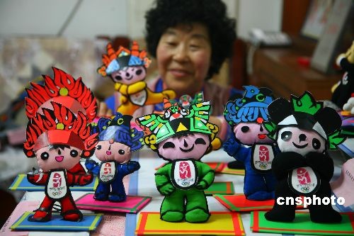 4月7日,70歲的社區居民郭秀芳看著自已縫制的奧運福娃心里甭提多高興了。郭秀芳退休前是小學體育老師,2006年她開始用布料縫制“北京奧運會吉祥物福娃”,表達北京市民對北京奧運會的期盼和祝愿。目前已縫制百余件北京奧運福娃吉祥物,有些她送給社區居民,有些讓人們參觀學習,向社會宣傳奧運。她還被社區聘為手工制作教師,向居民傳授制作“福娃”的技巧。 卜向東 攝