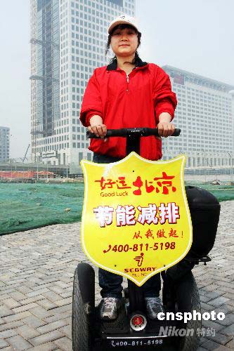 4月16日,北京一名奧運(yùn)“鳥(niǎo)巢”的志愿者首次騎上奧運(yùn)代步車進(jìn)行服務(wù)。據(jù)介紹,北京奧運(yùn)會(huì)賽時(shí)將有數(shù)十輛兩輪代步車被應(yīng)用到競(jìng)賽及非競(jìng)賽場(chǎng)館內(nèi)。其中,志愿者、安保以及維護(hù)人員進(jìn)行巡視都將用到這種車。作者: 鄭雄增