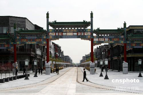 2008年4月21日,北京前門大街改造工程基本修整完畢,其正陽門及兩旁的建筑已展露出較強的明清時代的風(fēng)韻。今年“五一”,前門步行街將對游人開放。中新社發(fā) 任丘 攝