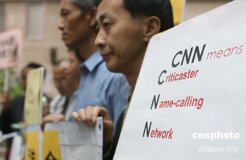 香港教育團體集會抗議CNN電視主播辱華言論。中新社發 武仲林 攝