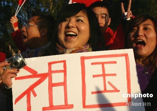 堪培拉華人冒秋寒歡迎北京奧運(yùn)圣火(3)