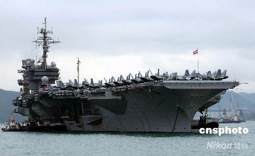 美國航空母艦“小鷹號”二十八日抵香港,將逗留五天。隨同“小鷹號”來港的包括至少四艘軍艦及七千名士兵及工作人員。今次是“小鷹號”退役前最后一次訪港。中新社發(fā) 洪少葵 攝