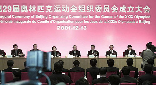 2001年12月13日,第29屆奧運(yùn)會(huì)組織委員會(huì)(北京奧組委)成立,標(biāo)志著北京2008年奧運(yùn)會(huì)的籌辦工作正式啟動(dòng)。(資料照片)