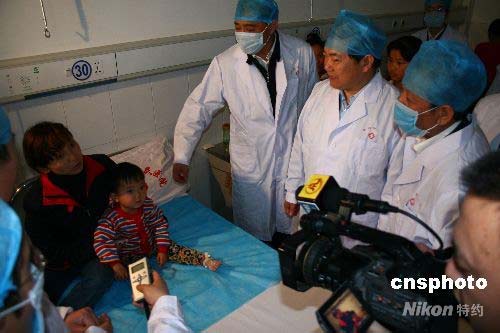 4月29日,安徽省省長王三運(yùn)先后來到阜陽市第二人民醫(yī)院和市人民醫(yī)院看望慰問患病孩子和家屬。中新社發(fā) 穎慧 攝