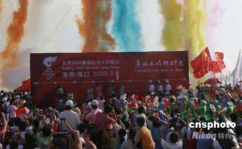 數(shù)十萬觀眾走出家門,揮舞五星紅旗和奧運五環(huán)旗喜迎奧運圣火。中新社發(fā) 尹海明 攝