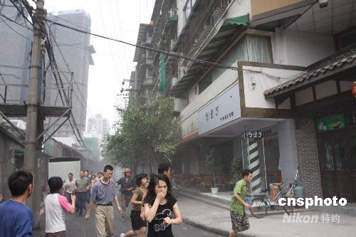 5月12日14時28分,在四川汶川縣(北緯31度,東經103.4度)發生7.8級地震,四川省會成都有強烈震感,市民緊急從建筑物中跑出來,在街道上緊急避險,全城交通因此受阻。 中新社發 鄒輝 攝