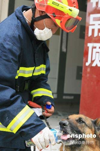 組圖:消防搜救隊給搜救犬喂水(7)